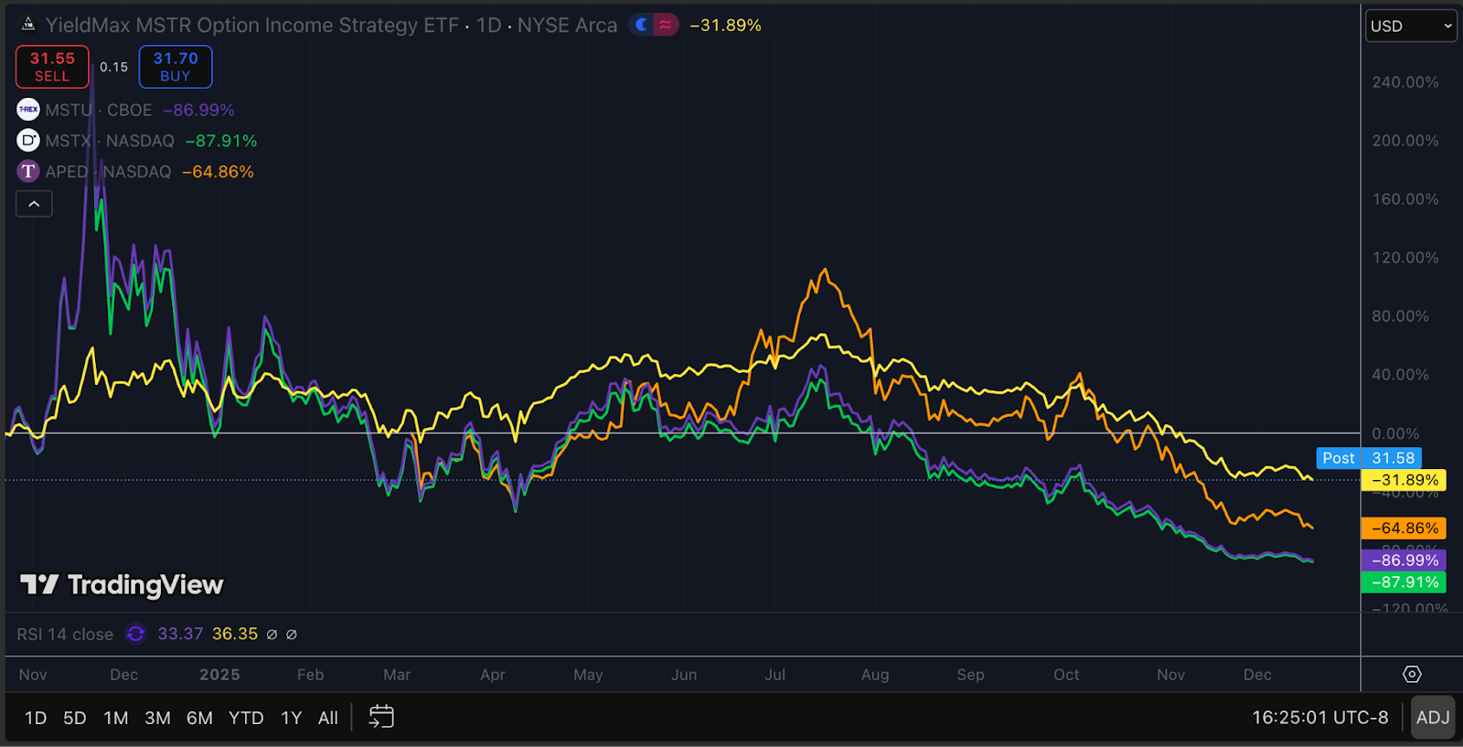 The reflexive feedback loops have turned negative. Strategy underperforms, which hurts leveraged ETFs like MSTX and MSTU. Such products offer two times exposure to Strategy’s stock. Those ETFs are down approximately eighty five percent in the last 12 months, ranking among the ten worst performers out of forty seven hundred US ETF products.