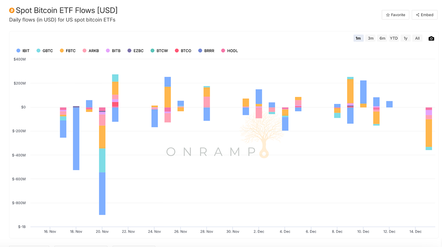 Spot Bitcoin ETFs experienced over three billion dollars in net outflows since October. BlackRock’s iShares Bitcoin Trust recording its longest withdrawal streak since launching.