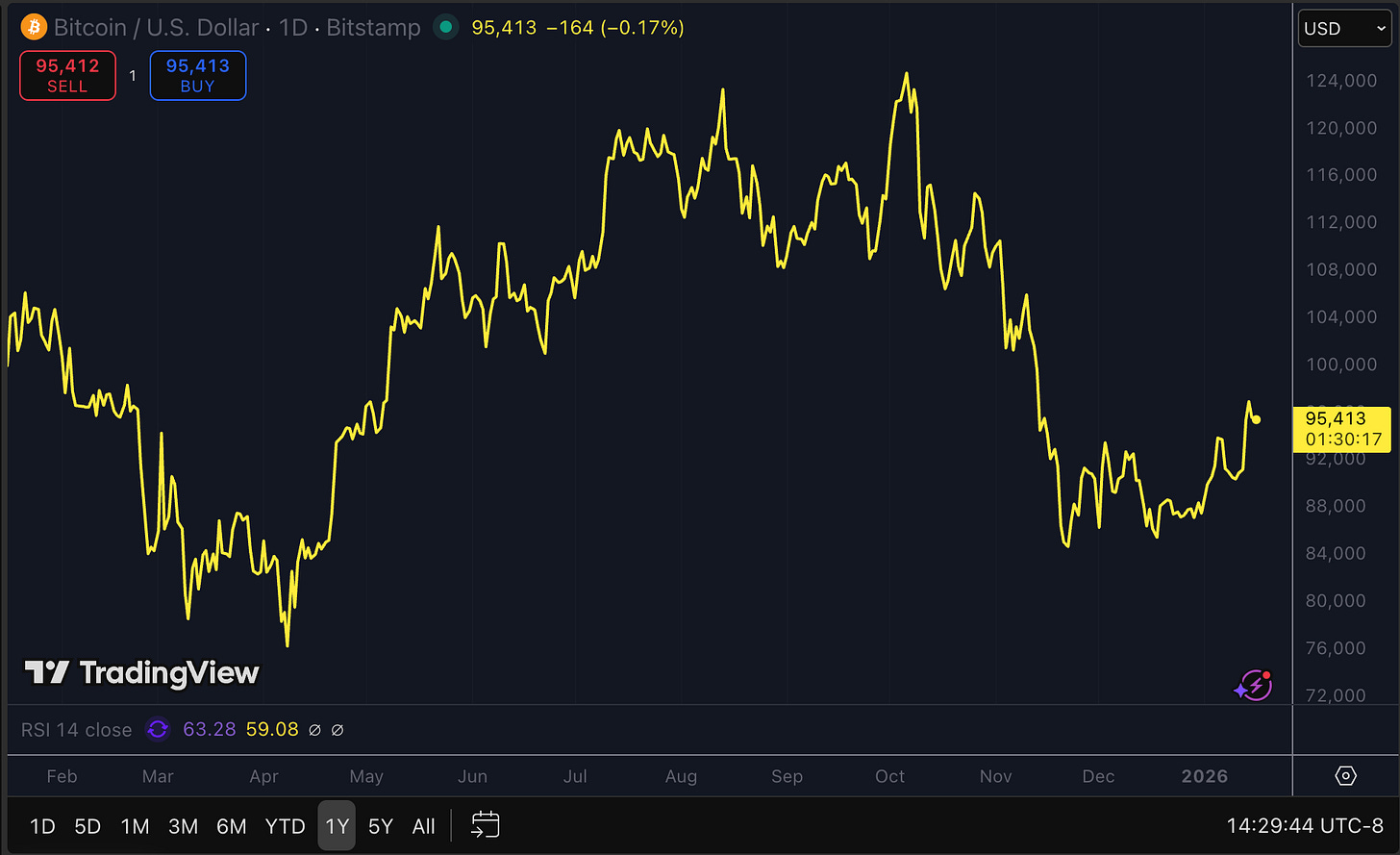 And Bitcoin? On December 15th it went below eighty five thousand. Then it ended 2025 lower than where it traded the year before.