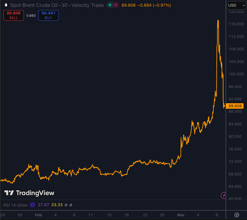 Brent Crude oil traded as high as $116 on Sunday night before crashing Monday during trading. Europe has announced the release of 400 million barrels of strategic oil reserves.
