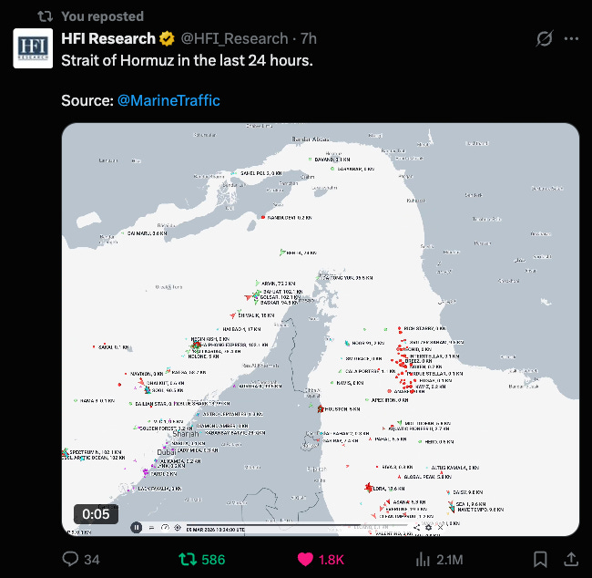 And it’s not just oil. Qatar, one of the world’s largest LNG exporters, halted production at Ras Laffan after Iranian drone strikes hit its facilities.