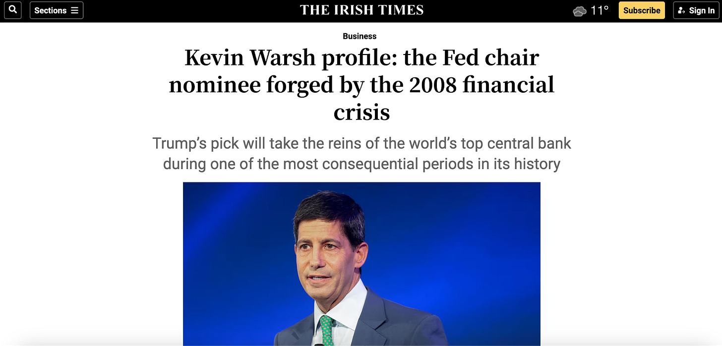 Warsh has been inside the Fed before, and he left because he didn’t like what it was becoming. He’s had fifteen years to sharpen his framework. But the constraints are the constraints.