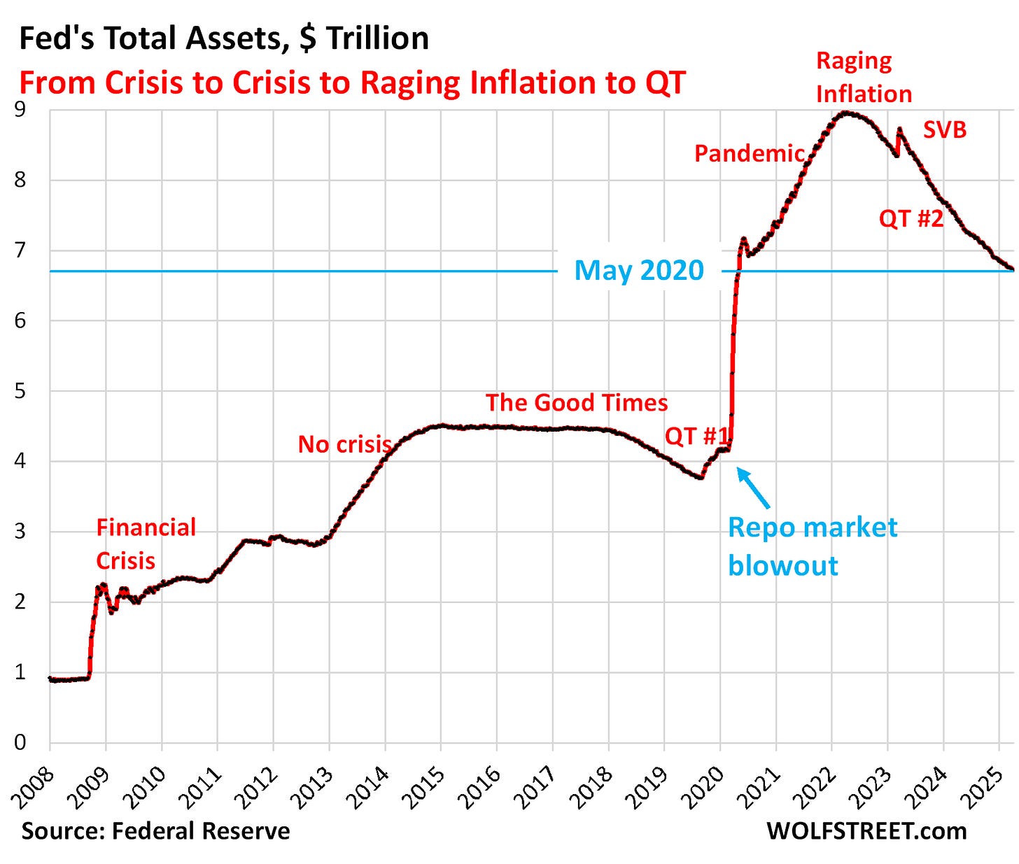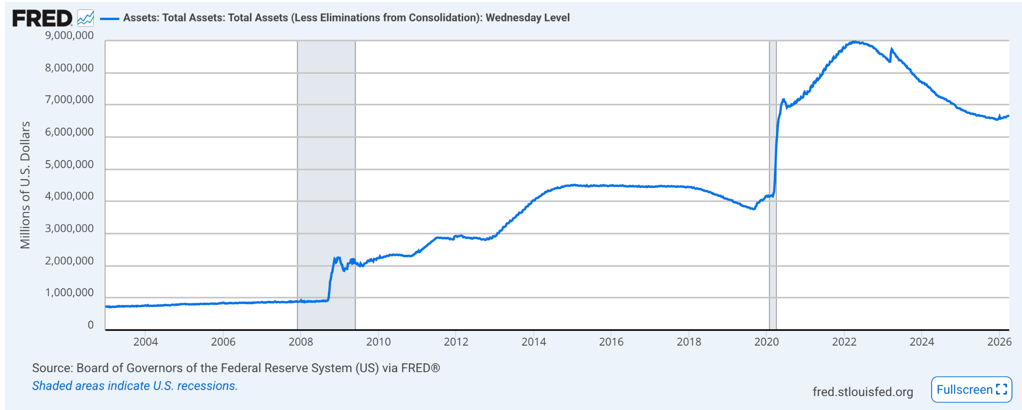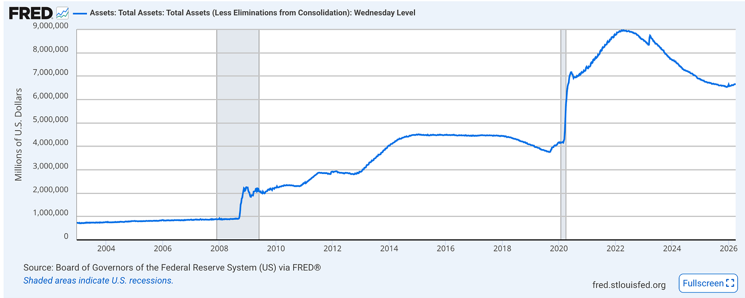For those of you who have followed my work, you know I’ve been tracking the Fed’s slow march toward fiscal dominance: the point at which monetary policy becomes subservient to the Treasury’s financing needs. As I laid out in The Quiet Pivot and Not So Stealthy QE, the Fed has been drifting in this direction for years, whether it admits it or not. The $6.7 trillion balance sheet sitting at the Eccles Building right now is the physical manifestation of that drift. And now a man who has spent fifteen years railing against exactly this kind of institutional bloat is about to inherit the whole mess.