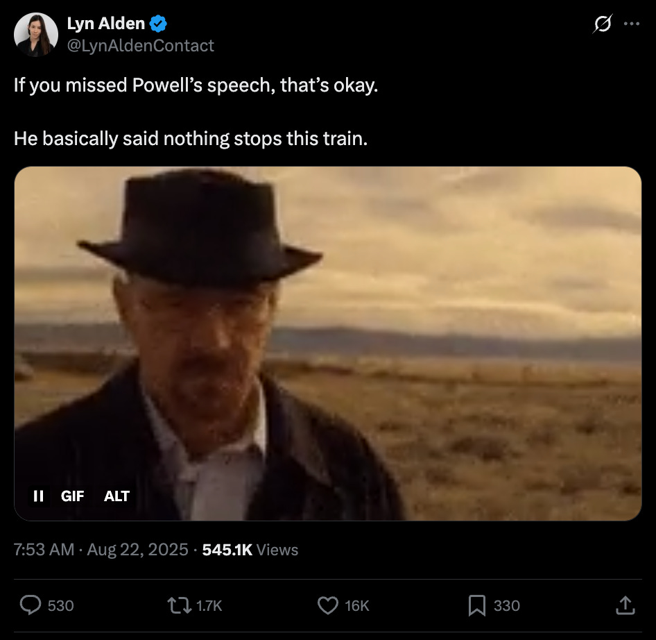 She’s even repeated this sentiment on Twitter with her viral “nothing stops this train” memes:
