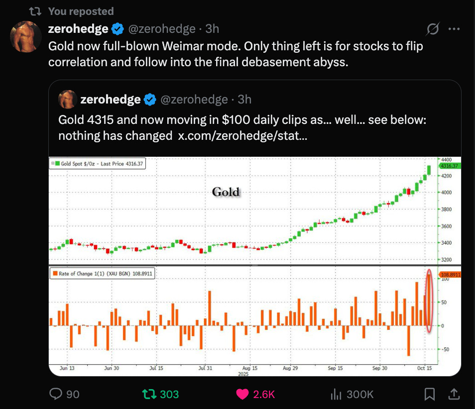 For years, I’ve been writing about the structural forces that would eventually drive gold back to its rightful place as a monetary asset: Triffin’s Dilemma, the Dollar Milkshake, the unsustainable trajectory of Western debt. What we’re witnessing now is the market finally waking up to what should have been obvious all along. The era of cheap money, infinite QE, and consequence free deficit spending is coming to an end, and gold is the canary singing its final song in the coal mine.
