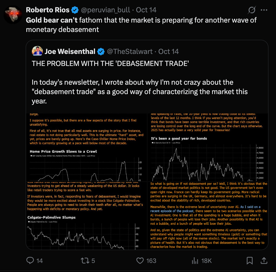 Gold is reasserting its role as money, not commodity. It’s reclaiming its position as the ultimate reserve asset, the one that requires no counterparty, fears no sanctions, and survives monetary regime changes. Central banks understand this; they’re voting with their reserves. Smart money understands this; they’re following the central banks.