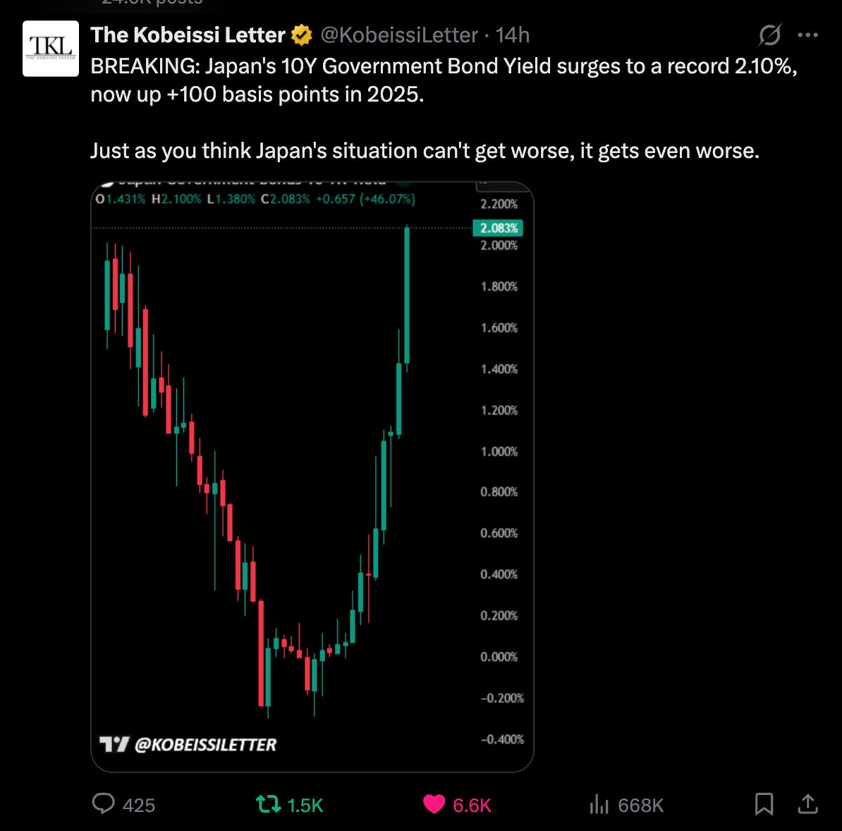 That’s the insane power of convexity. We’re talking about potentially trillions of dollars of losses on JGBs spread throughout the Japanese banking and financial system.